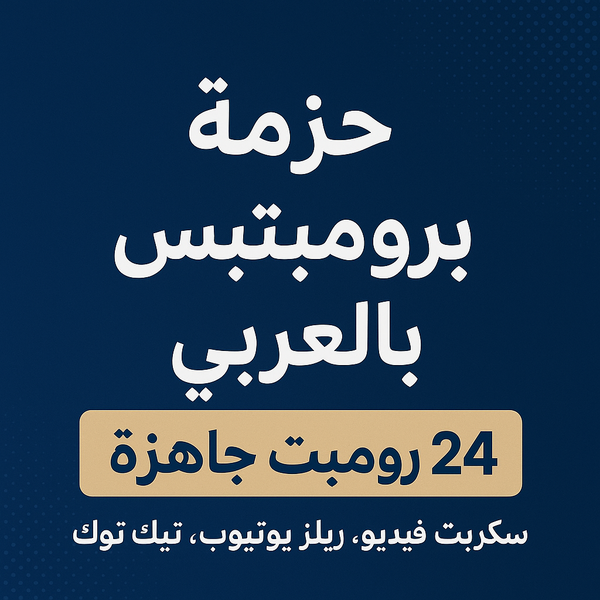 حزمة برومبس بالعربي — 24 برومبت جاهزة (سكربت فيديو، ريلز يوتيوب، تيك توك)